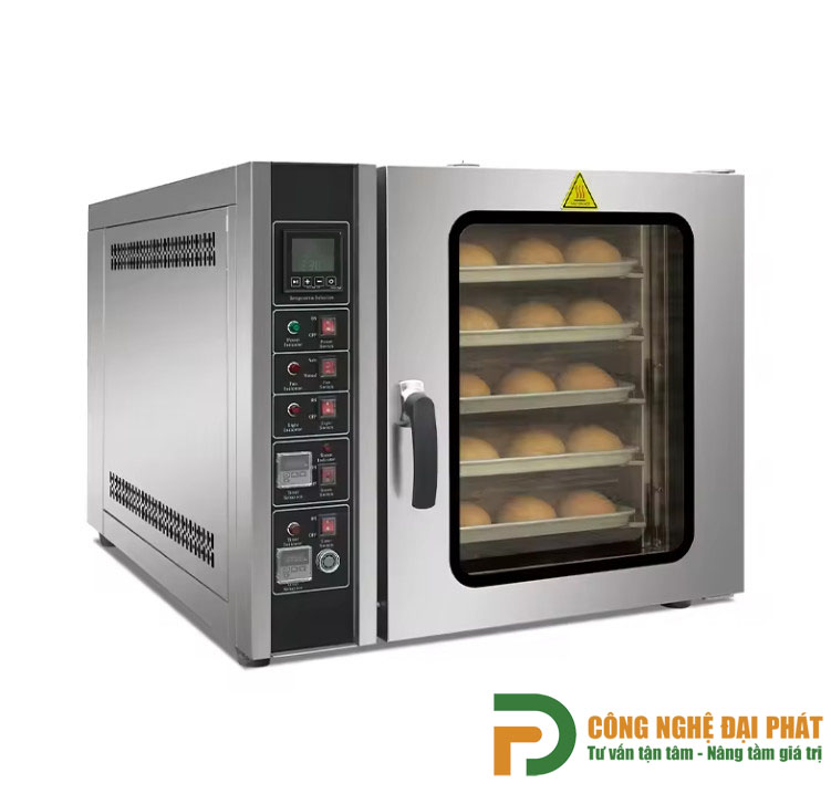 Lò nướng bánh đối lưu 5 khay (LBĐP-D05) là thiết bị sử dụng các thanh nhiệt kết hợp với hệ thống quạt đối lưu sẽ giúp hơi nóng len lỏi đến từng vị trí bên trong lò để giúp bánh chín và vàng đều. Đây là thiết bị được 80-90% các tiệm bánh mì hiện nay sử dụng.