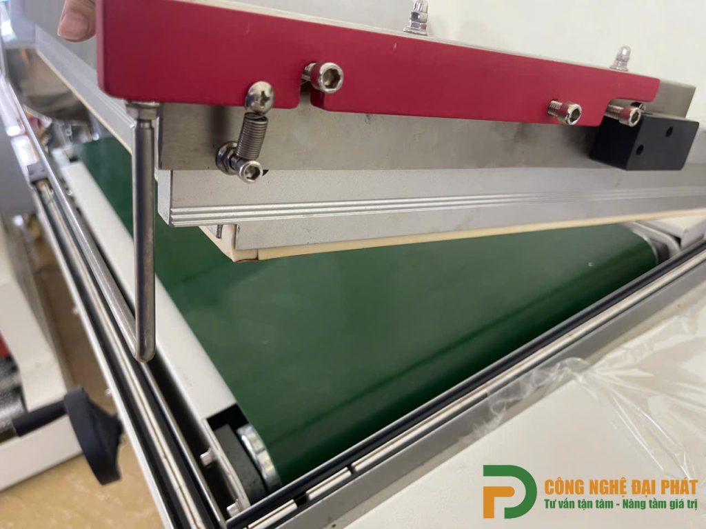 - Hệ thống điều khiển: Điều khiển các thông số như nhiệt độ, thời gian cắt màng, tốc độ băng tải.