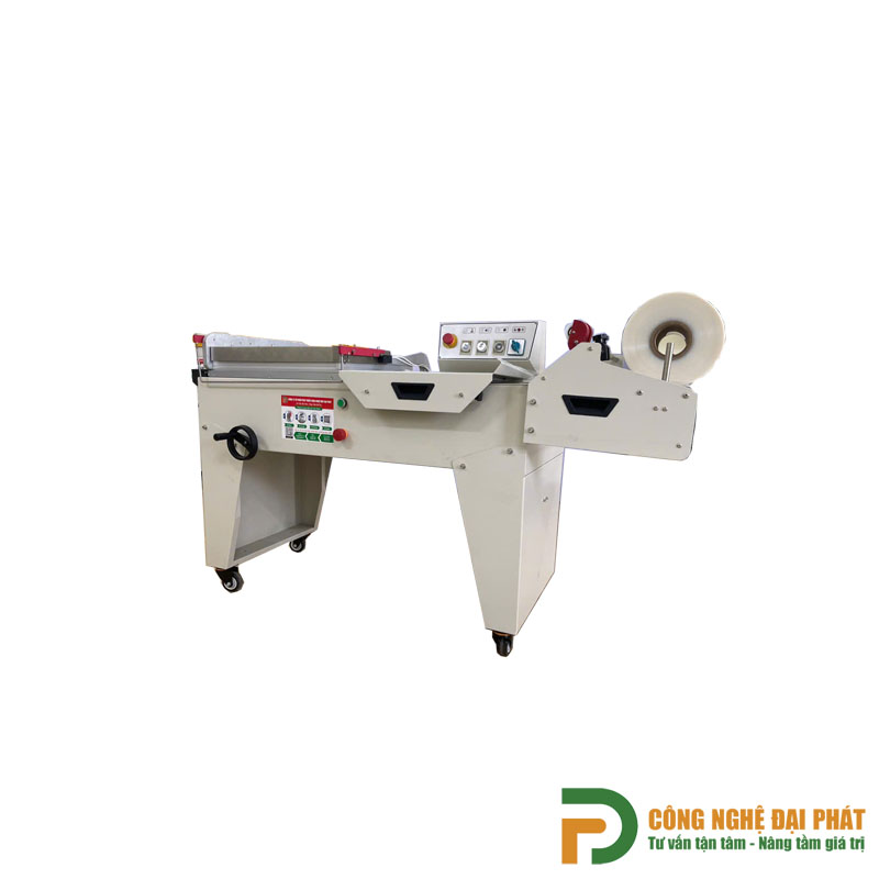 Máy cắt màng chân cao bán tự động (ĐGĐP-E15) là thiết bị thực hiện việc cắt màng hình chữ L bằng nhiệt, đồng thời hàn miệng màng ôm sát sản phẩm, giúp tiết kiệm tối ưu màng co,