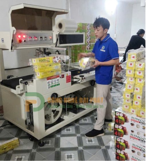 Ứng dụng để cắt bọc màng co nhiều loại sản phẩm khác nhau với thông số là chiều rộng tối đa 55cm, chiều dài tối đa 45cm, chiều cao tối đa 15 cm.