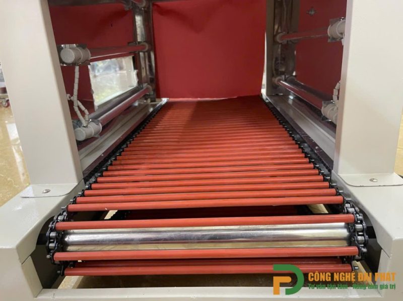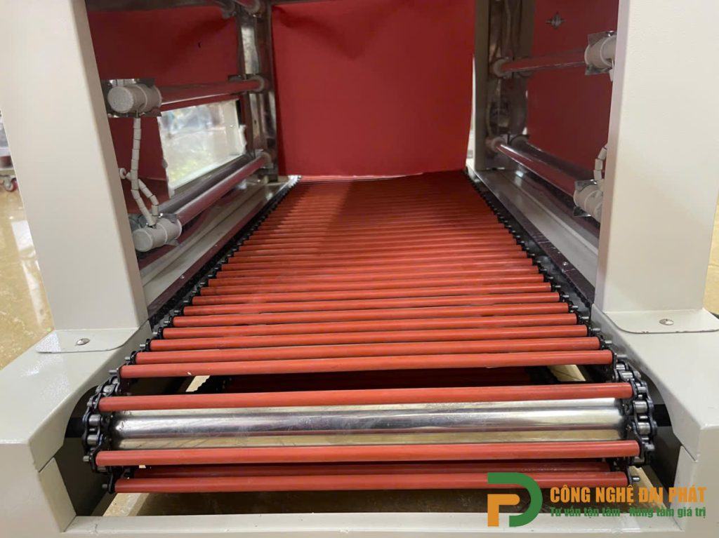 – Băng tải dạng đũa: Giúp cố định sản phẩm chắc chắn trong quá trình co màng.