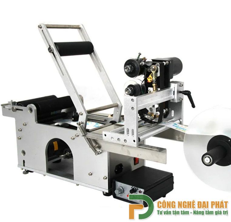 Máy Dán Decal Chai Tròn Bán Tự Động Có In Date (ĐGĐP-H01) là thiết bị được sử dụng để dán nhãn, cho sản phẩm dạng chai tròn. Máy được sử dụng rộng dãi trong ngành dược, đồ uống, chế biến thực phẩm, mỹ phẩm,…Máy có thể kết hợp đồng bộ với các dây chuyền sản xuất tạo thành một dây chuyền đồng bộ, hoàn toàn tự động.