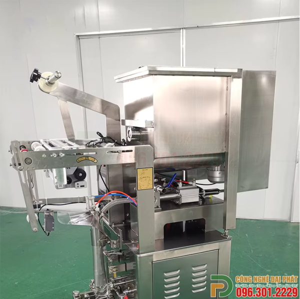 Máy đóng gói nước sốt (ĐGĐP-P37) là thiết bị tự động được thiết kế để định lượng chính xác các sản phẩm lỏng hoặc sệt (nước sốt) và chiết rót chúng vào bao bì (thường là gói/túi mềm). Máy thực hiện các công đoạn từ việc kéo màng, tạo túi, định lượng, chiết rót, hàn kín và cắt gói một cách tự động và liên tục.
