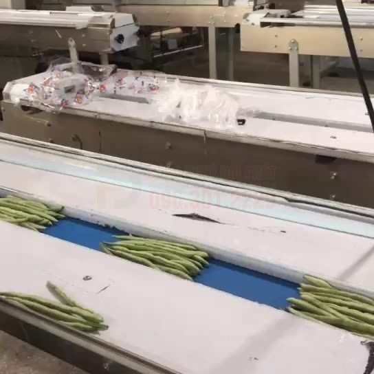 Máy đóng gói rau củ tự động (ĐGĐP-P46) là thiết bị đóng gói tự động nằm ngang, trong đó sản phẩm được đặt trên một băng tải và di chuyển theo chiều ngang. Cuộn màng sẽ được kéo ra, bao bọc quanh sản phẩm, sau đó được hàn kín ở ba vị trí: một đường hàn dọc phía dưới và hai đường hàn ngang ở hai đầu của sản phẩm.