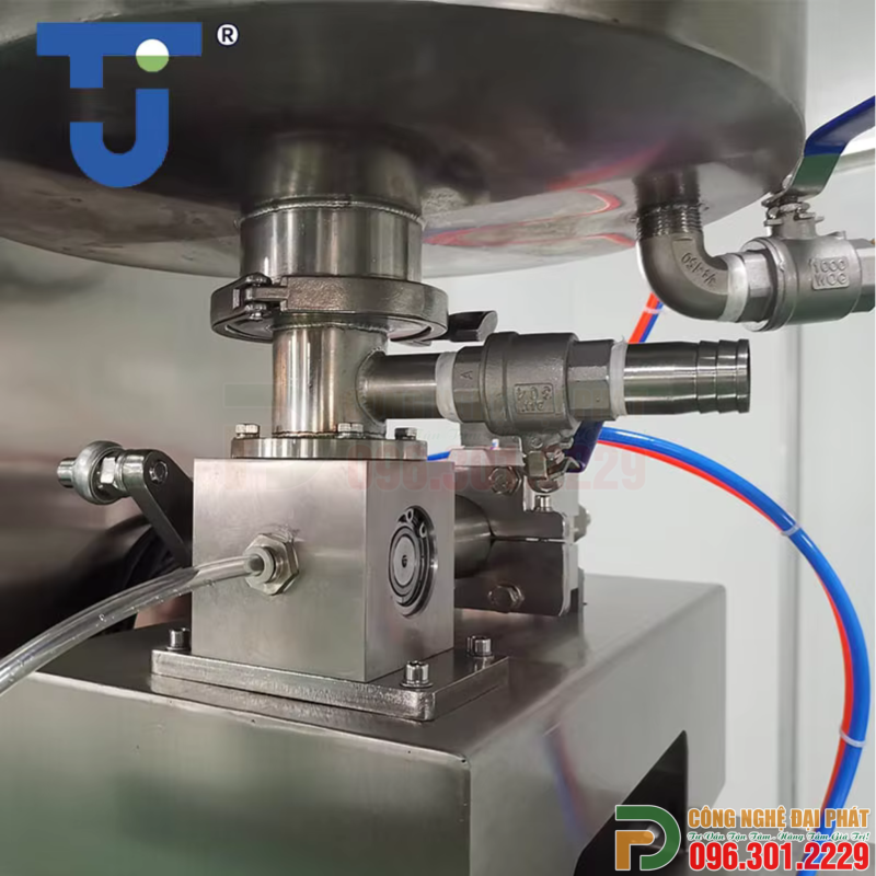 • Phễu chứa nguyên liệu: Nơi chứa thạch hoặc dung dịch lỏng cần đóng gói. Phễu thường được làm bằng Inox 304 hoặc 316L, có thể có bộ phận khuấy hoặc gia nhiệt nhẹ (đối với thạch cần giữ nóng chảy).