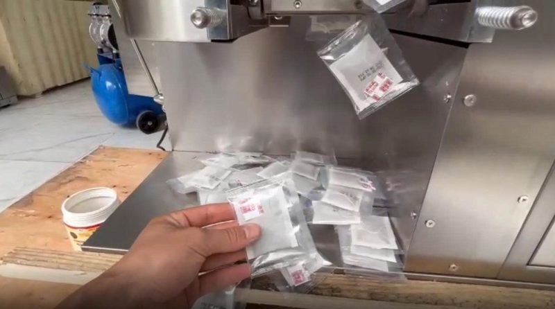 1. Cấp liệu & Định lượng: Nguyên liệu trà được đổ vào phễu chứa. Hệ thống định lượng (thường là cốc đong hoặc cân điện tử) sẽ tự động cân chính xác khối lượng trà cho mỗi túi (thường từ 1g – 5g).