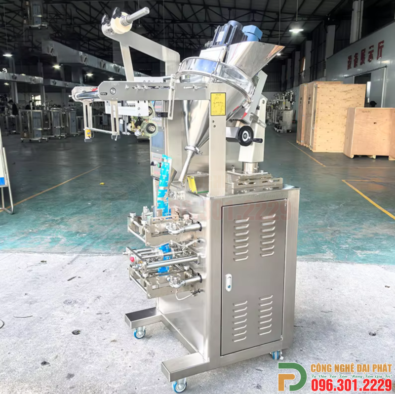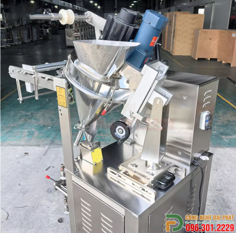 Máy đóng gói trục vít nghiêng hàn 4 biên (ĐGĐP-P41) à thiết bị tự động được thiết kế để định lượng các sản phẩm dạng bột (đặc biệt là bột khó chảy, dễ vón cục, hoặc dễ bay bụi) bằng hệ thống trục vít đặt nghiêng, và chiết rót chúng vào bao bì được hàn kín ở bốn cạnh (2 cạnh dọc và 2 cạnh ngang).