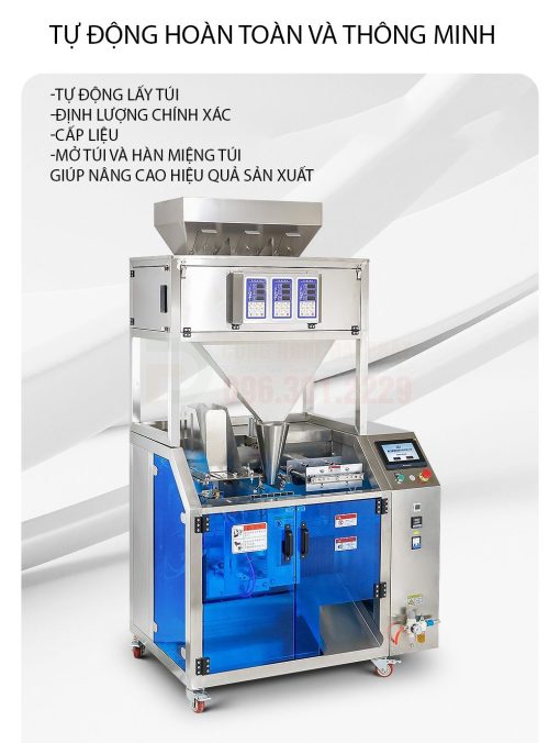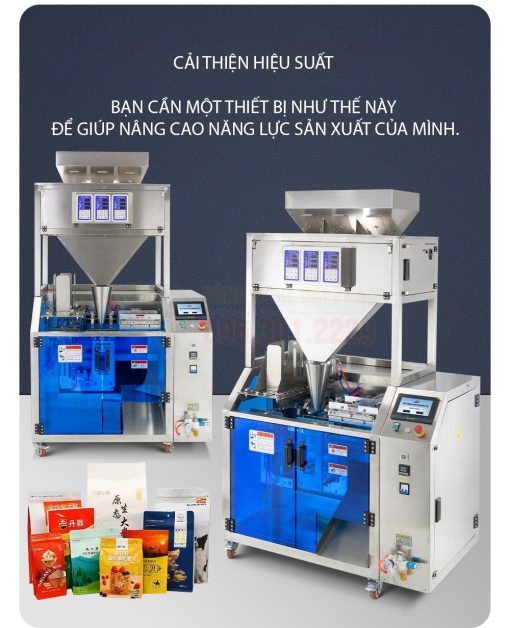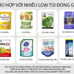 - Tính linh hoạt cao: Có thể sử dụng nhiều loại túi với kích thước, hình dáng, và chất liệu khác nhau (túi zipper, túi đứng, túi giấy, túi màng nhôm…).