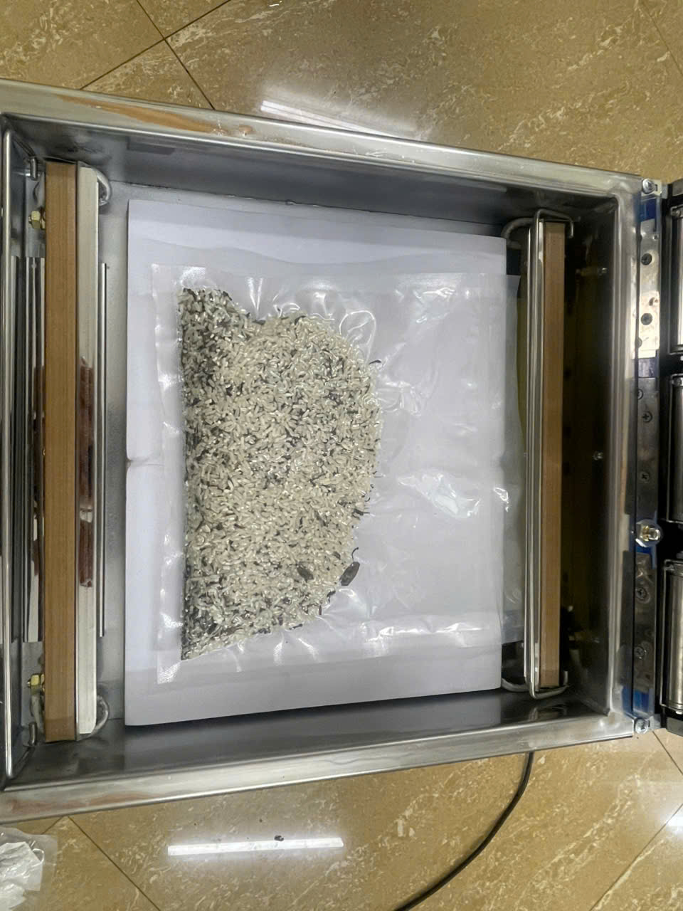 - Bước 4: Đặt túi hút chân không vào buồng hút.