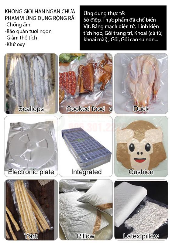 - Bảo quản linh kiện điện tử: Hút chân không các linh kiện như vi mạch, chip điện tử để chống ẩm, chống tĩnh điện và bảo vệ khỏi bụi bẩn trong quá trình vận chuyển.