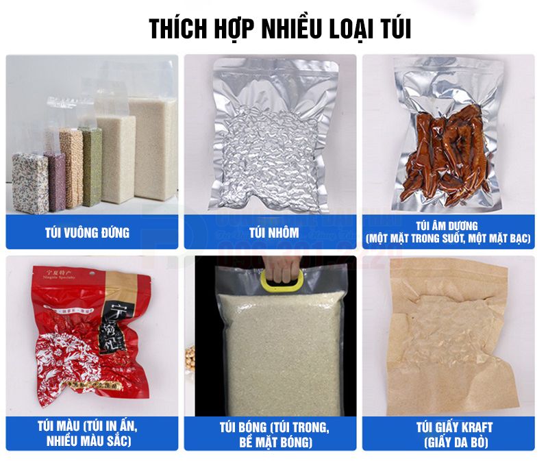 - Máy hút chân không buồng: Toàn bộ túi sản phẩm được đặt vào trong một buồng kín. Máy sẽ hút không khí cả trong buồng lẫn trong túi, tạo ra lực hút rất mạnh. Loại máy này lý tưởng cho các sản phẩm có chất lỏng, bột hoặc các sản phẩm dễ vỡ.