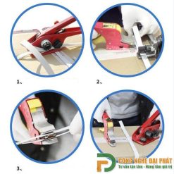 - Dụng cụ được sử dụng kèm dụng cụ căng dây đai của bộ dụng cụ siết đai nhựa bằng tay