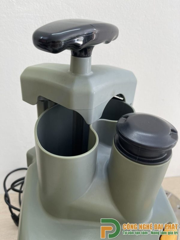 – Máy tích hợp 2 hộp chứa rau củ tiện lợi, nếu bạn muốn thái những rau củ dạng dài như: cà rốt, dưa chuột…bạn có thể cho vào bên phần ống đựng của máy, còn nếu bạn muốn thái rau củ dạng tròn hay dạng khác thì bạn chỉ cần cho vào bên còn lại của máy.