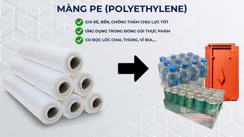 - Ứng dụng: Dùng để bọc các kiện hàng lớn, đóng gói lốc chai nước giải khát hoặc các thùng carton.