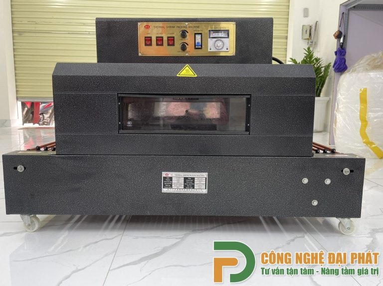 - Máy bán tự động: Kết hợp máy cắt màng (thao tác bán thủ công) và buồng co nhiệt. Phù hợp với doanh nghiệp vừa và nhỏ, sản lượng trung bình.